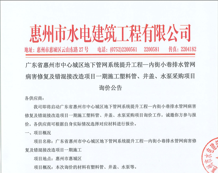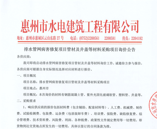 惠州市增江龍門段治理工程施工(一標段)勞務采購比選公告……